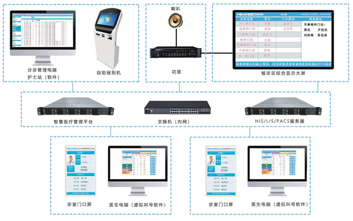 智慧醫(yī)療排隊叫號系統(tǒng),包括門診排隊叫號系統(tǒng)、藥房排隊叫號系統(tǒng)、醫(yī)技排隊叫號系統(tǒng)、體檢中心排隊叫號系統(tǒng)、預(yù)防接種中心排隊叫號系統(tǒng)等產(chǎn)品,在結(jié)合醫(yī)院現(xiàn)狀的情況下,結(jié)合醫(yī)院實際需求定制開發(fā)的一整套醫(yī)院排隊解決方案,主要用途是幫助醫(yī)院提高服務(wù)效率,減少患者排隊等候時間,在與HIS/PACS/LIS等醫(yī)院管理系統(tǒng)對接的情況下,做到精準(zhǔn)的患者分流。