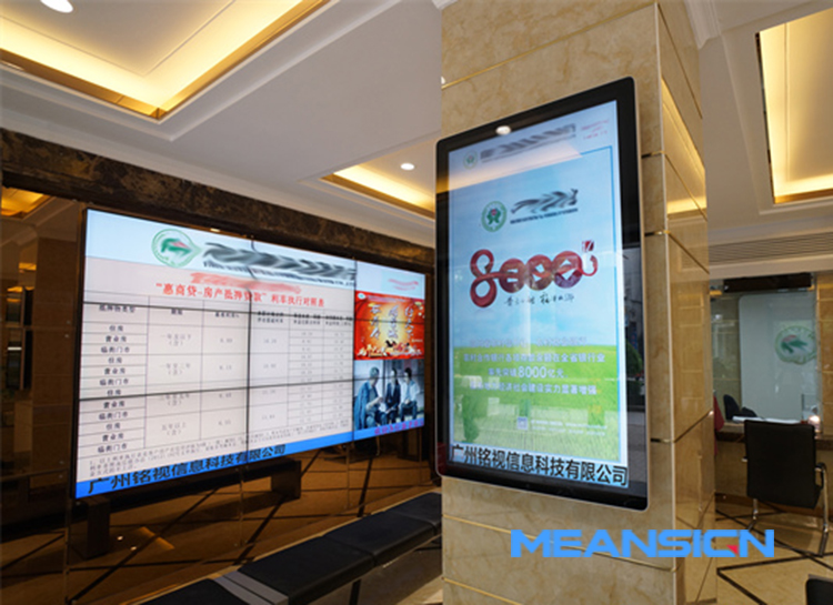 在銀行大廳、服務臺、櫥窗上分別采用不同的安裝方式,將銘視壁掛廣告機、液晶拼接屏裝在墻上,方便顧客隨時瀏覽,既能節省空間,也能美化辦事環境。日常播放銀行宣傳視頻、銀行介紹、存款業務、貸款業務簡介、金融產品、理財產品、金融政策、利息利率、匯率兌換、業務辦理流程、注意事項等內容。